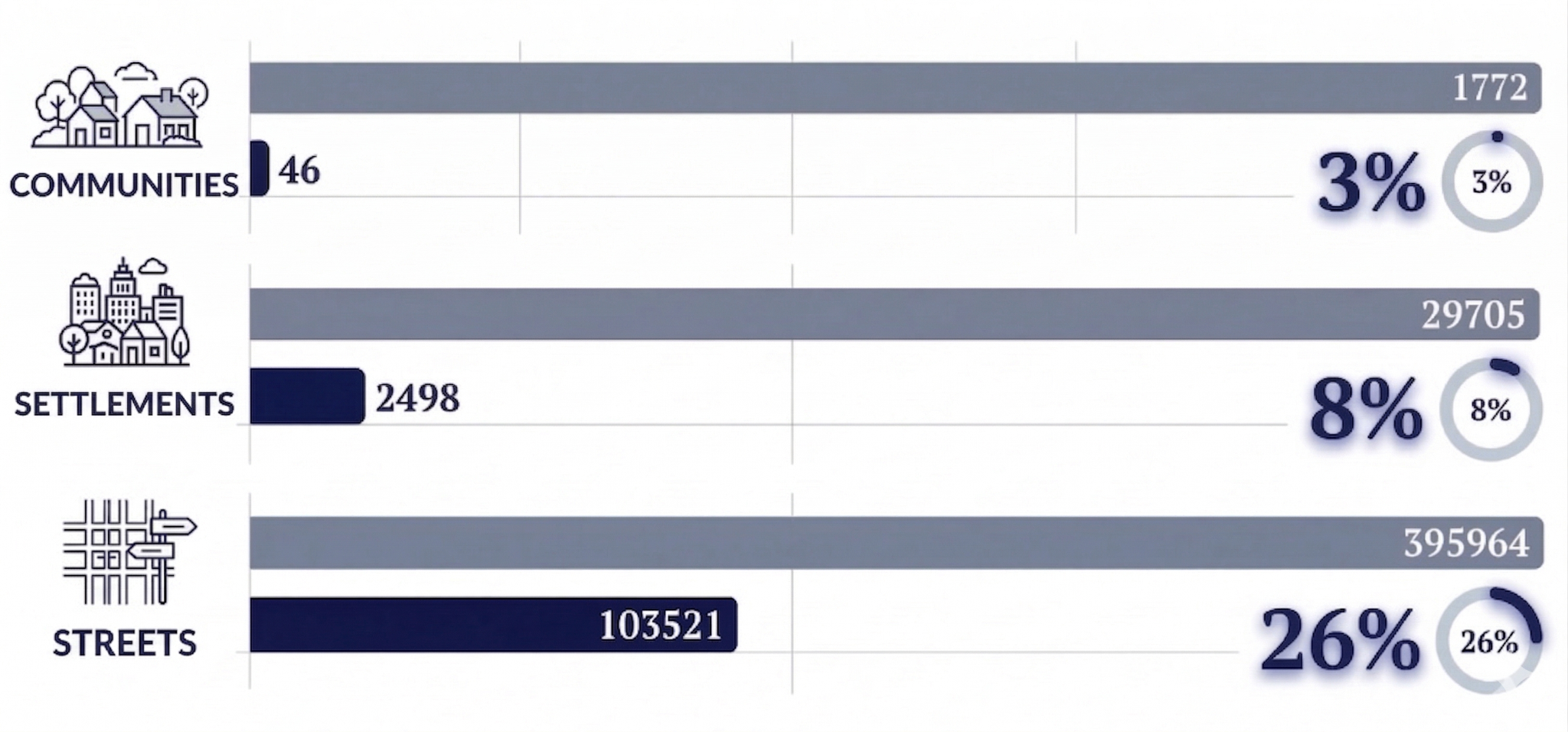72.2% of settlements changed their district